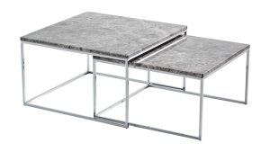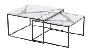Mira 2-Piece Marbleite Coffee Table offers a variety of customization options to match the decoration of your home. Gold plated and chrome plated alternatives on the coffee table legs add a modern and stylish touch to the design, allowing you to appeal to different styles. In addition, with 7 different static paint color options, you can design the coffee table legs in the color of your choice, giving your space a unique character.
