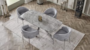 Afra Mermerit Masa Takımı, tasarım detayları ile kendi tarzınızı yansıtmanıza olanak tanıyor. Ayaklarda sunulan gold kaplama ve krom kaplama seçenekleri, masanın genel görünümünü zenginleştirirken, farklı tarzlara hitap ediyor. Ayrıca, 7 farklı static boya renk seçeneği (mat siyah, parlak siyah, saten, rose, krem, beyaz ve antrasit) ile masa ayaklarını dilediğiniz renkte tasarlayarak, evinizin dekorasyonuna uyum sağlayabilirsiniz.