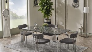 Sahra Elite Masa Takımı, tasarım detaylarıyla kişisel zevklerinizi yansıtmanıza olanak tanıyor. Ayaklarda sunulan gold kaplama ve krom kaplama seçenekleri, masanın genel görünümünü zenginleştirirken, farklı tarzlara hitap ediyor. Ayrıca, 7 farklı static boya renk seçeneği (mat siyah, parlak siyah, saten, rose, krem, beyaz ve antrasit) ile masa ayaklarını istediğiniz renkte tasarlayarak, evinizin dekorasyonuna uyum sağlayabilirsiniz.