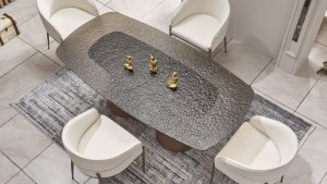 Стол Antique Crystal Glass Table Set позволяет отразить ваш собственный стиль благодаря широкому выбору цветовых решений. Вы можете выбрать для ножек стола 7 вариантов статичного окрашивания (черный матовый, черный глянцевый, сатин, роза, крем, белый и антрацит), для столешницы - 3 варианта цвета хрустального стекла (дымчатый, бронзовый и синий), а для стульев - 23 варианта цвета в 3 видах ткани. Таким образом, вы можете создать комбинацию, которая наилучшим образом подойдет к оформлению вашего дома и отразит ваш личный вкус.