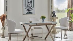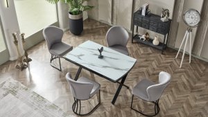 Столовый набор Vega предлагает возможности персонализации, которые позволят адаптироваться к атмосфере вашего дома. Варианты золотого и хромированного покрытия ножек стола придают стильный блеск его прочности и позволяют использовать различные стили оформления. Кроме того, вы можете придать уникальность своему жилому пространству, оформив ножки стола в выбранном вами цвете с помощью 7 вариантов статичных красок.
